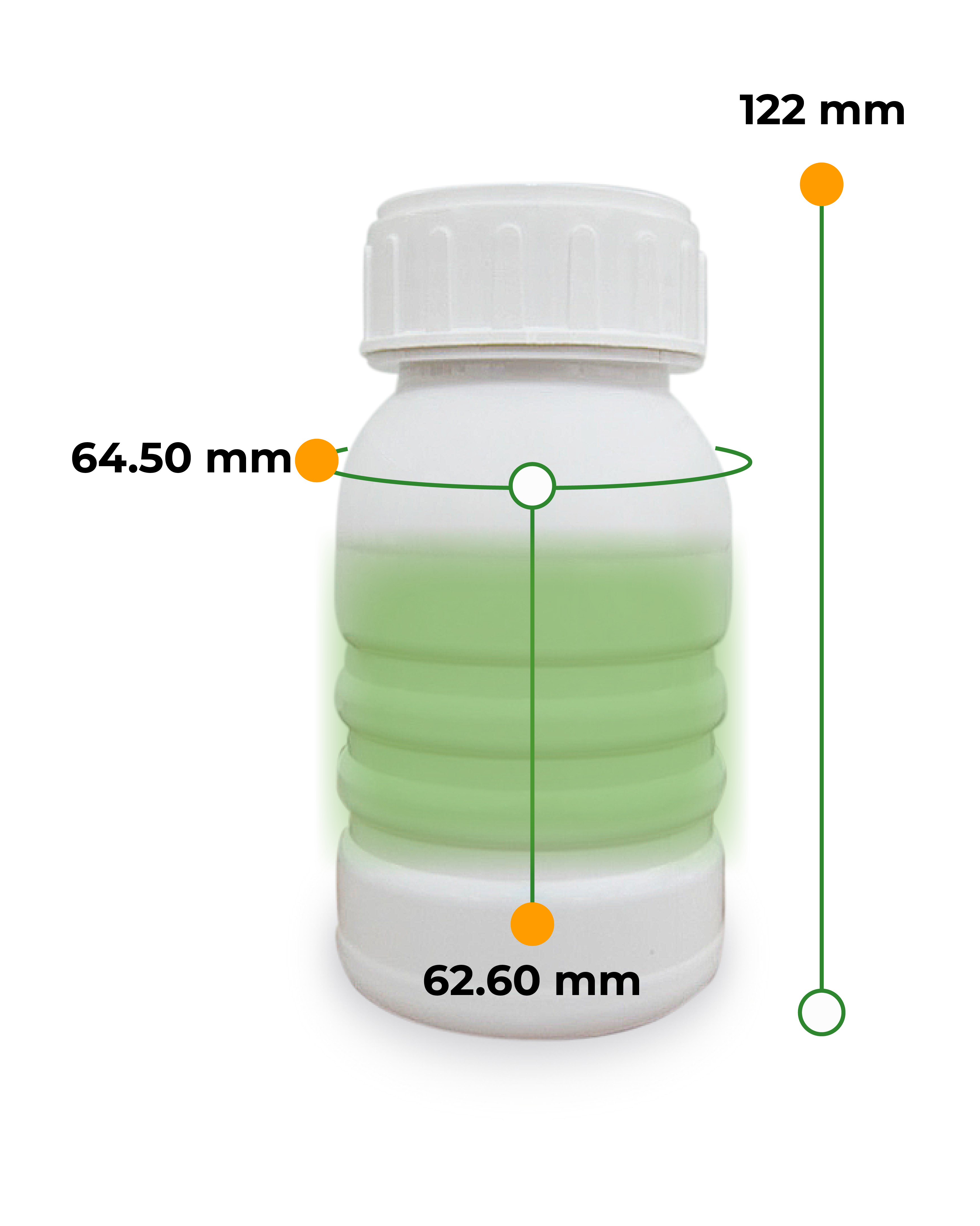 Plastic container made from FDA food-grade PET resin, with a capacity of 250 ml. Its rings ensure greater rigidity, preventing collapse.