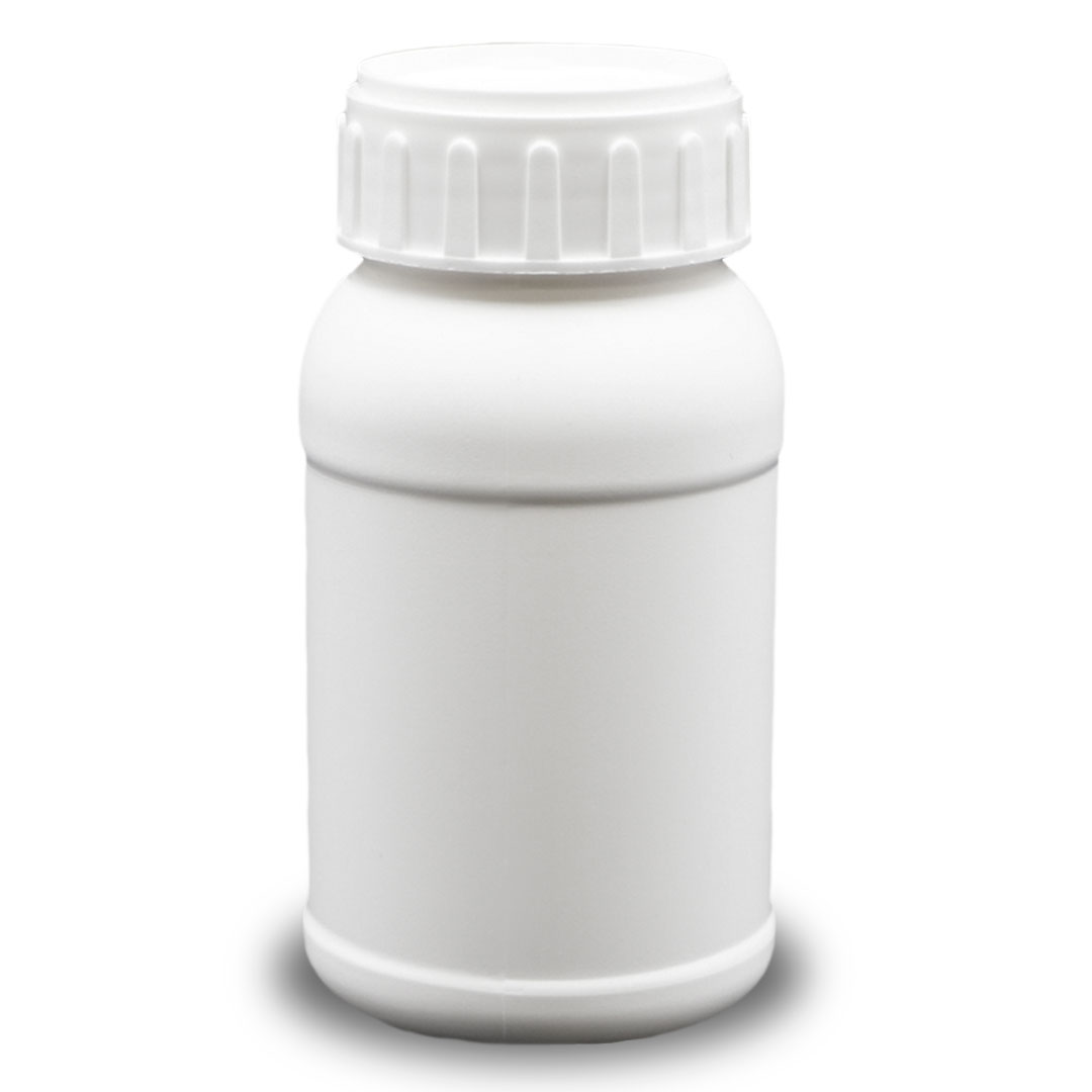 Envase de Polietileno de Alta densidad, con capacidad de 250 ml, cuenta con diseño de protector de etiqueta que permite exhibir su etiqueta sin arrugas, evitando el roce y desgaste, lo que representa una mayor presencia y distinción de su producto.